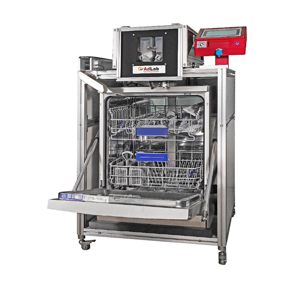 This testing equipment is used to determine the mechanical dishwashing resistance of utensils, such as glass ceramic, vitreous enamel, metal and plastics under the combined chemical, thermal and mechanical stresses of mechanical dishwashing in domestic dishwashers.
